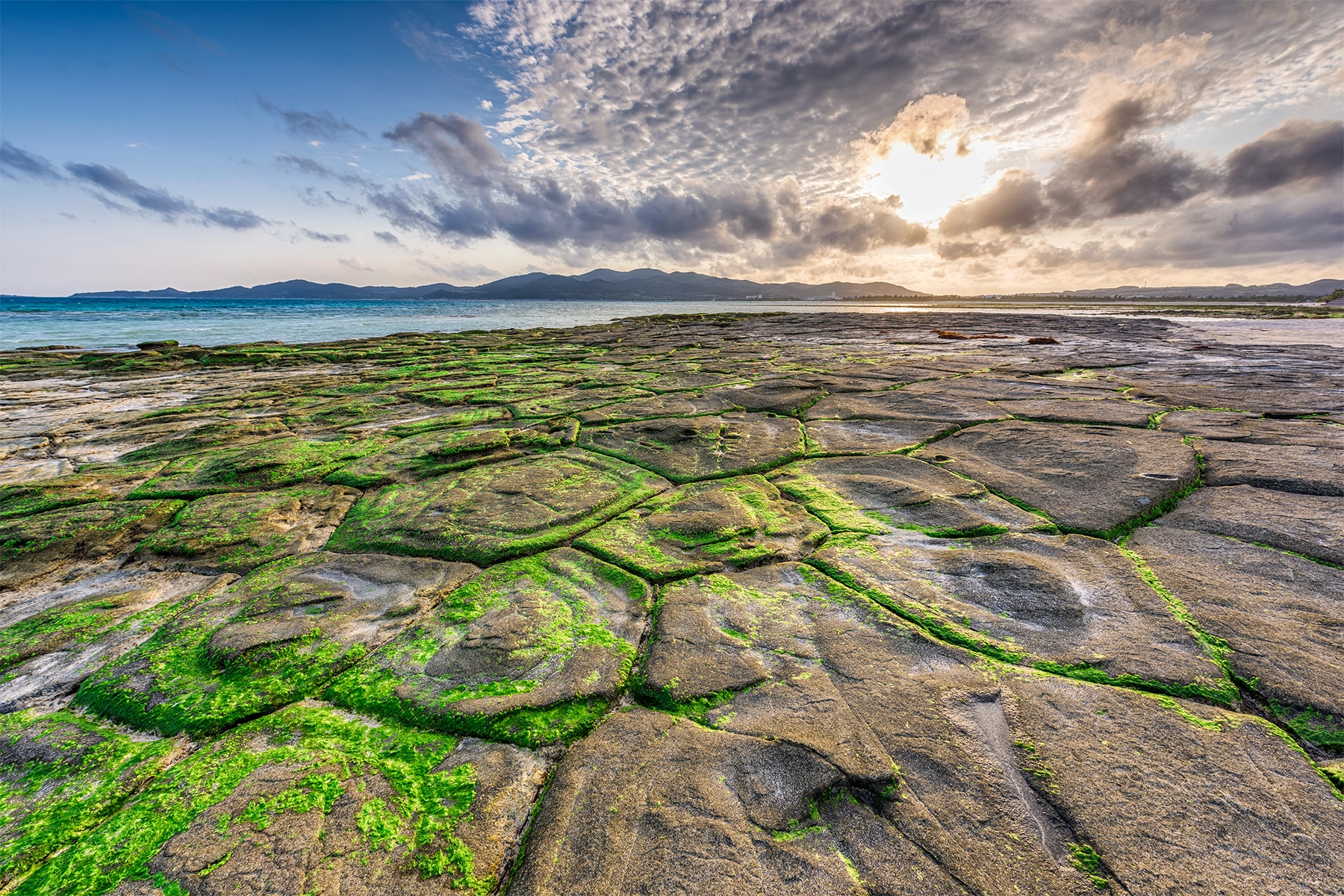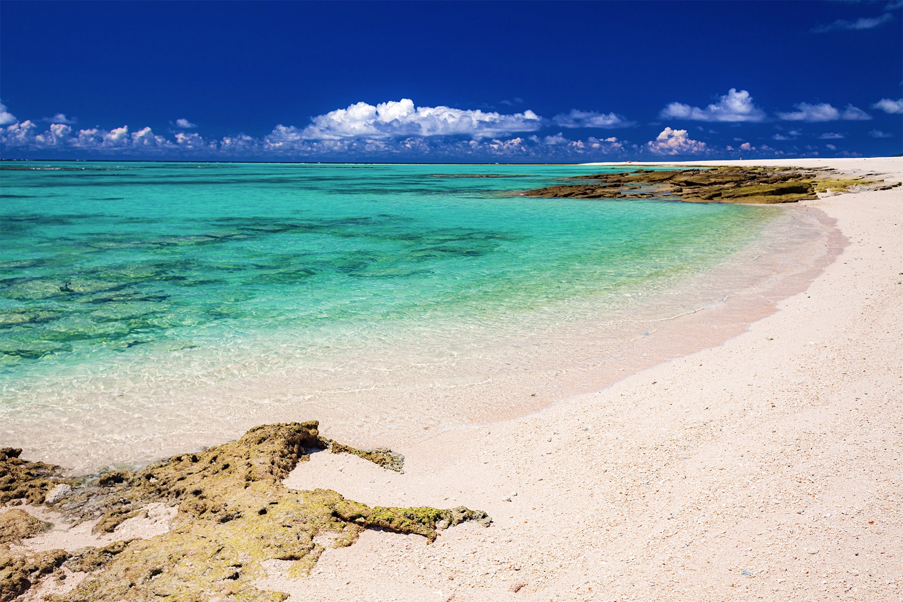 久米島は沖縄本島から西に約100 km、沖縄諸島に属する島で、最も西に位置する島で、美しい自然とのんびりした時間が楽しめる離島です。特にハテの浜は、透き通った海に白い砂浜が広がる絶景スポットです。海辺の「畳石」は亀の甲羅のような岩が並び、自然の不思議を感じられます。また宇江城城跡や比屋定バンタからは島と海を一望できる絶景が広がります。海ぶどうや車エビなどの島グルメも豊富で、泡盛と一緒に楽しめます。