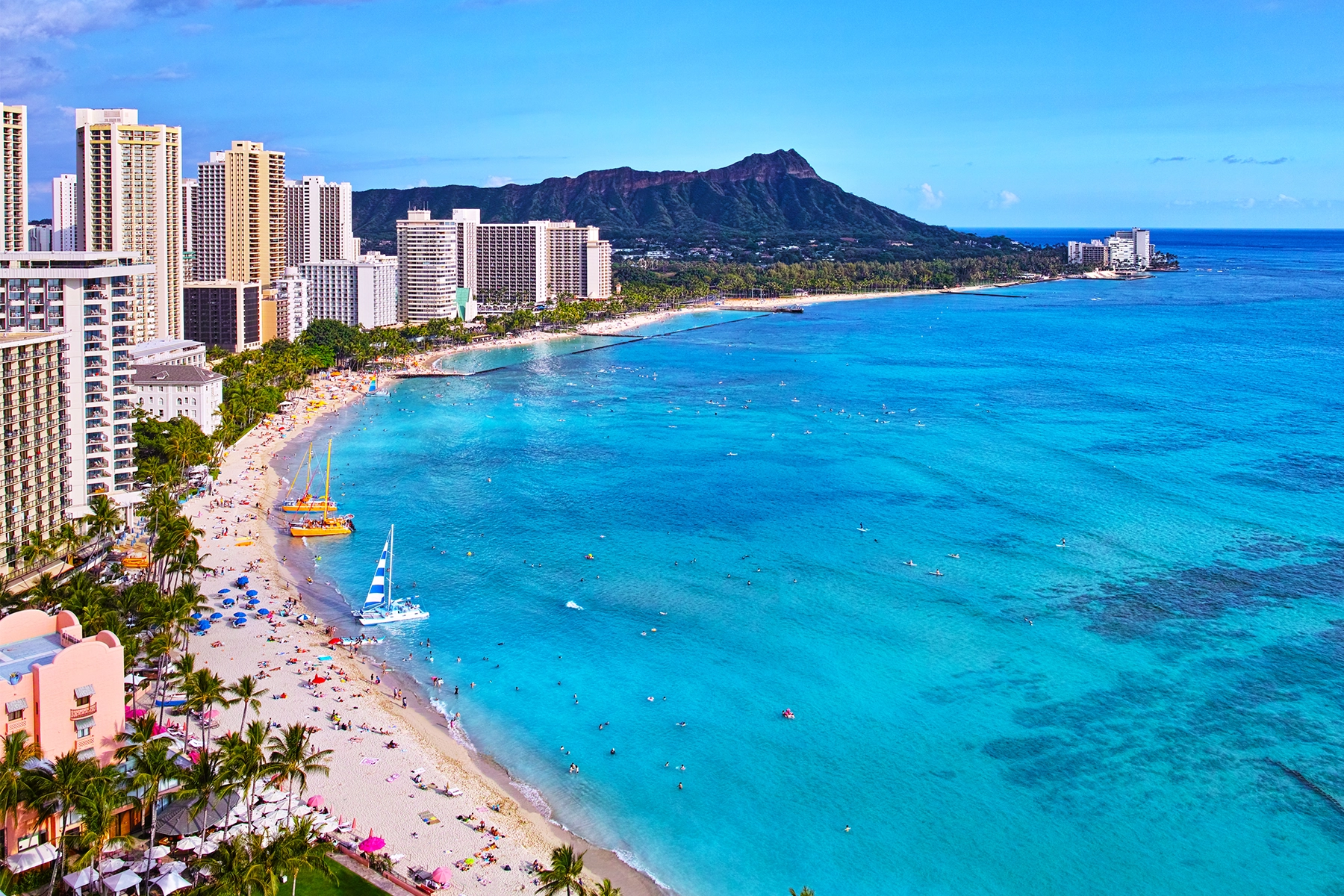 ハワイ州最大の都市で州都でもあるホノルルは、オアフ島南東部に位置する常夏の楽園。象徴的なワイキキ・ビーチにはリゾートホテルやショップが並び、背後にはダイヤモンド・ヘッドがそびえます。イオラニ宮殿やビショップ博物館など歴史的建造物も点在。パール・ハーバーでは戦艦アリゾナ記念館を通じて歴史を学べます。多様な文化が融合した街で、グルメやイベント、ショッピングも充実。海と文化、歴史が調和した魅力あふれる港町です。