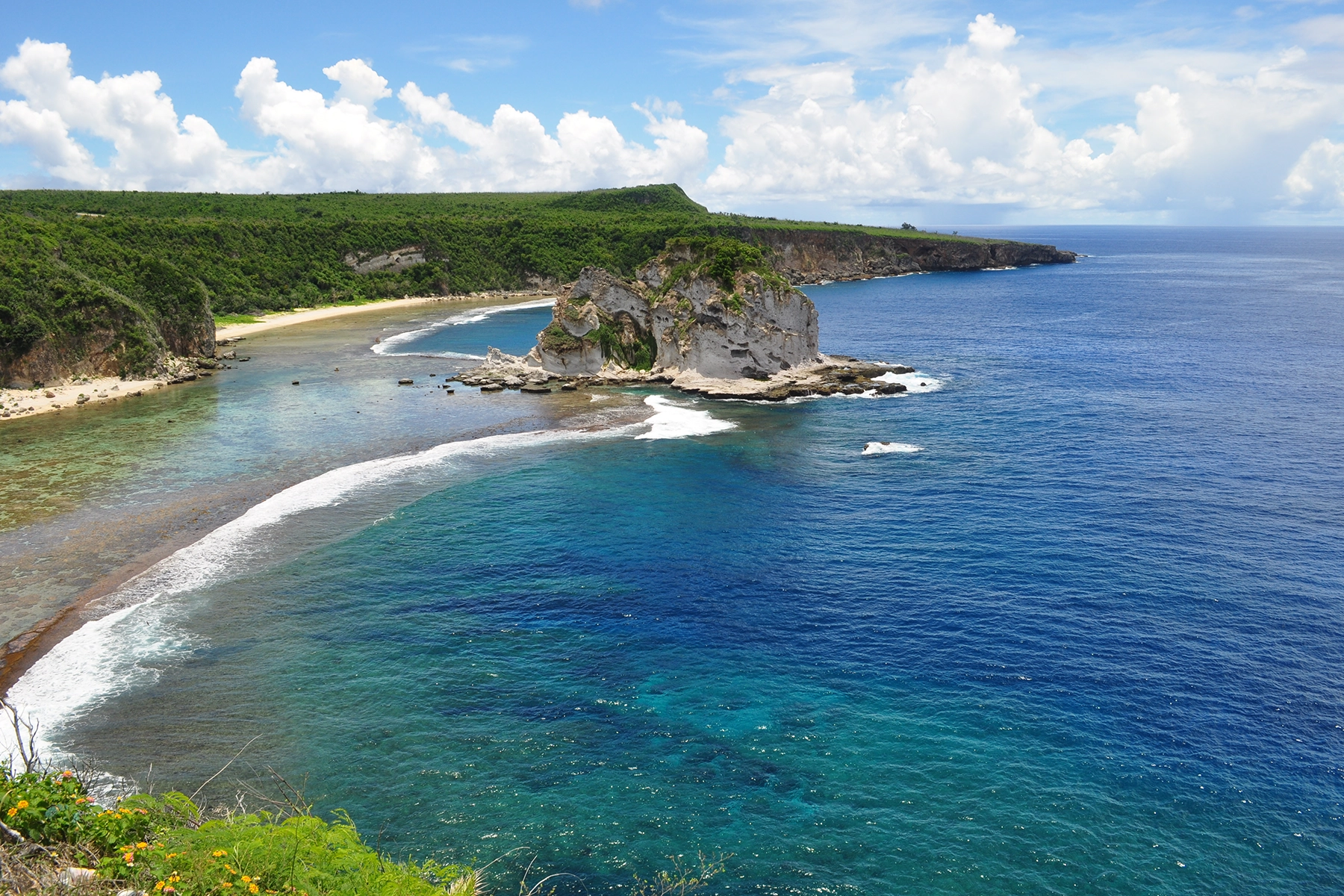 北マリアナ諸島最大の島、サイパンは、日本との時差はわずか1時間と旅の負担が少なく、気候は年間を通じて常夏で(平均気温は27度前後)、特に乾季(11〜5月)は爽やかで観光に最適です。通貨は米ドル、公用語は英語、一昔前と比べると日本人の観光客は激減しましたが、その分海外旅行に来た実感を一層味わえます。洗練された都会的なリゾートのグアムと比べて、素朴で人懐こい雰囲気が魅力のサイパンは、心も体もリフレッシュできる癒しの楽園です。