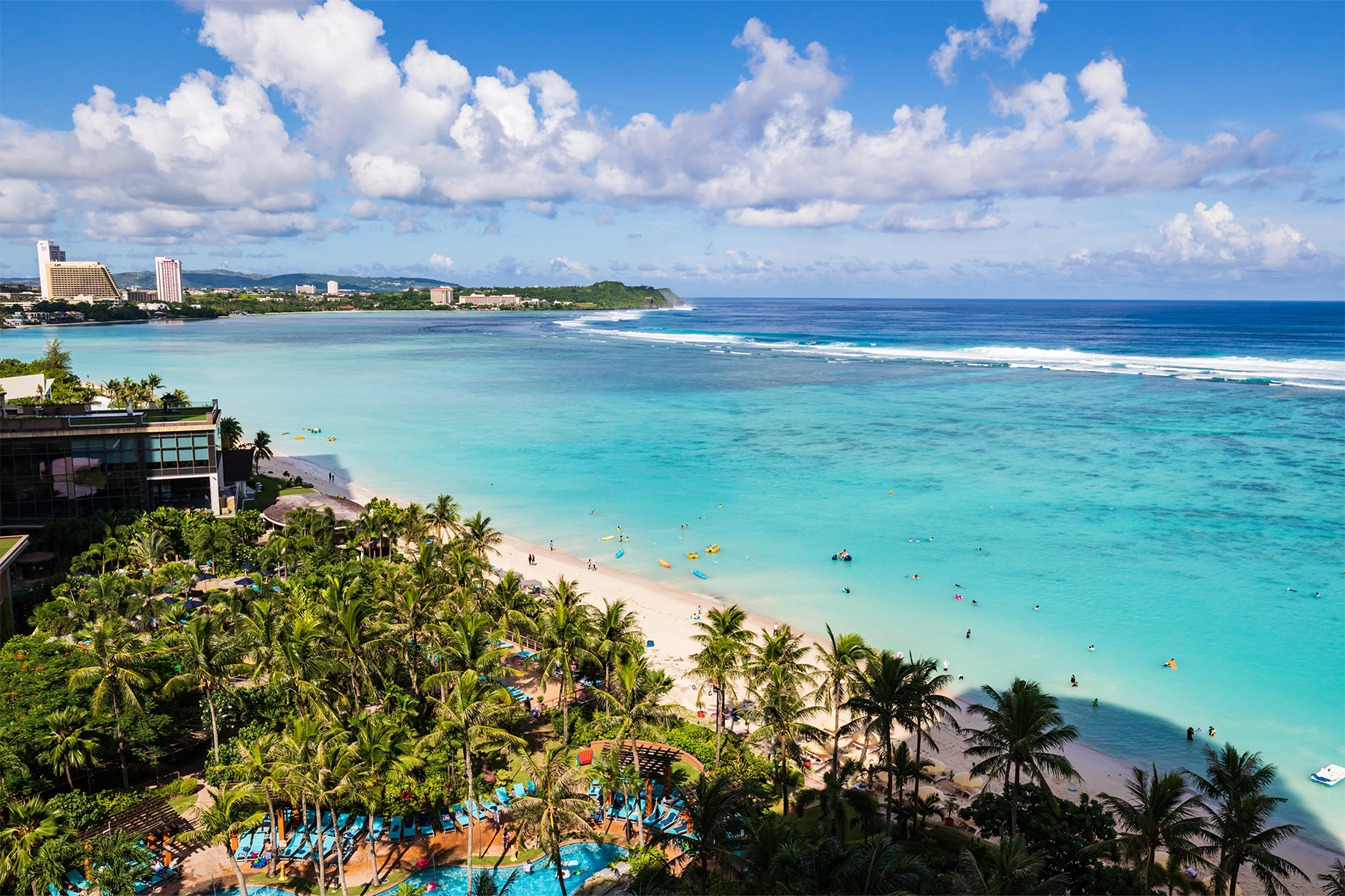 グアムは年間を通して常夏の気候に恵まれ、平均気温は約27度です。サイパンとよく比較されますが、地理や気候は似ているものの、より都会的で洗練されたリゾート地といった雰囲気があります。美しい遠浅のタモンビーチでのんびり過ごしたり、戦跡を訪ねたり、先住民チャモロ文化に触れる体験も魅力のひとつです。さらに、グアム・プレミア・アウトレットやマイクロネシアモールなど、お買い物スポットも豊富です。