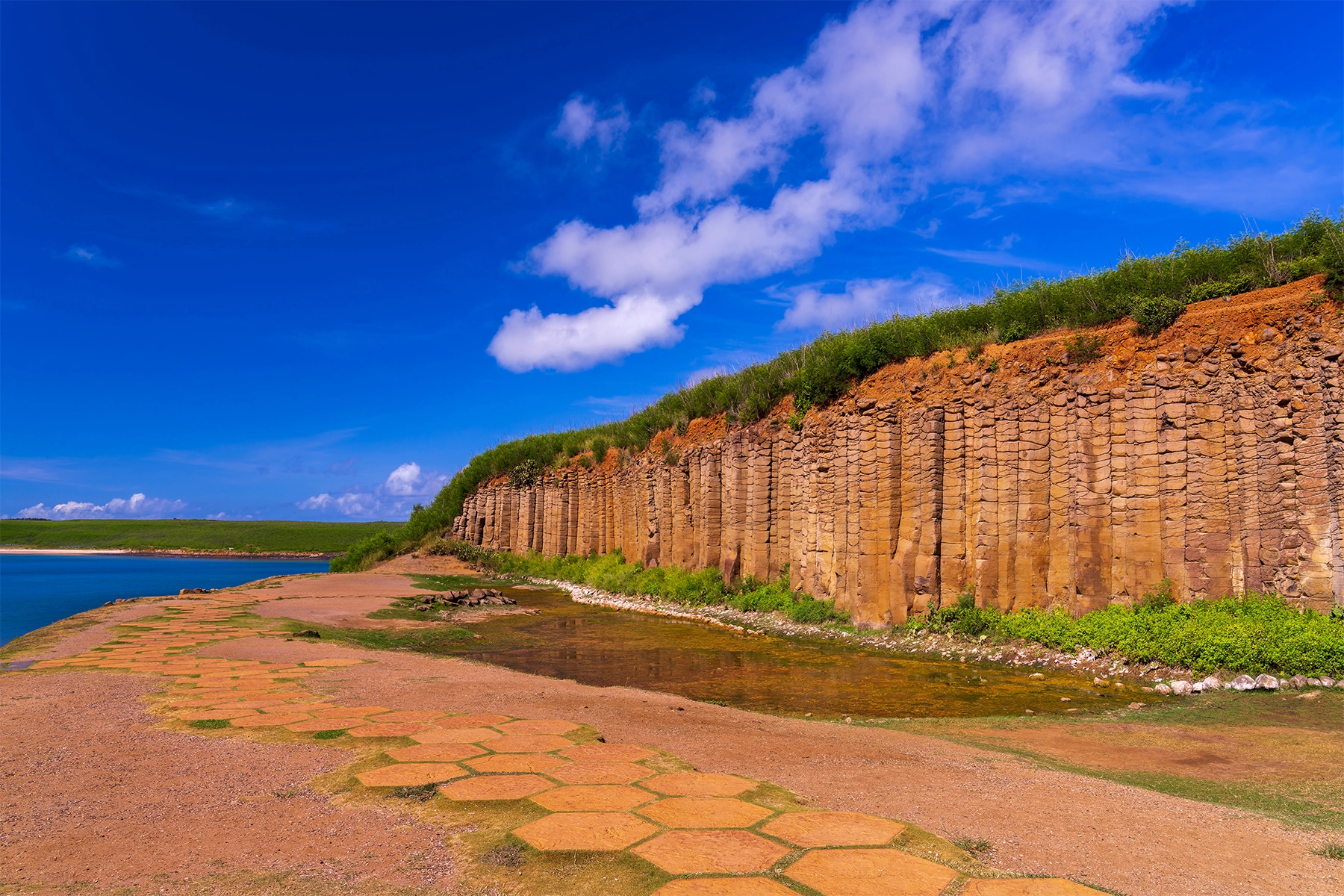 澎湖は台湾の西海上に浮かぶ美しい諸島で、約90の島々から成り立っています。透明度の高い海や豊かな自然が魅力で、柱状節理の奇岩や白い砂浜のビーチが有名です。二崁伝統集落保存地区や篤行十村、鎮風塔や天后宮(媽祖廟)など、歴史的に見る価値の高い建造物も多く、自然と文化の両面で楽しめます。地元の海鮮料理も絶品で、台湾の隠れたリゾート地として人気があります。