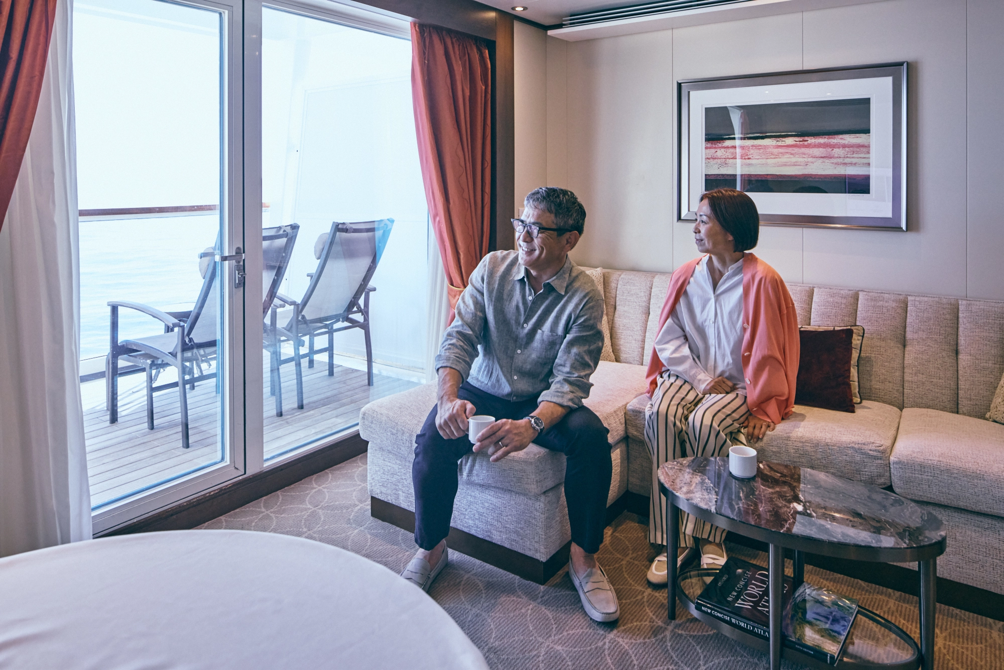 もし船酔いしてしまったとしても、三井オーシャンフジの客室は全室スイートルーム、静かに横になってゆっくりお休みいただけます。