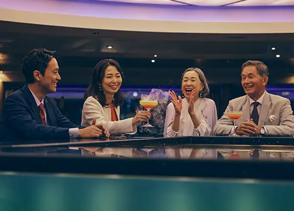 その日の気分にあわせて選べる様々なバーがあります。船ごとにオリジナルカクテルをご用意しており、広大な海原、美しい島々など風景が変わっていく様子を眺めなら大人の時間をお楽しみください。