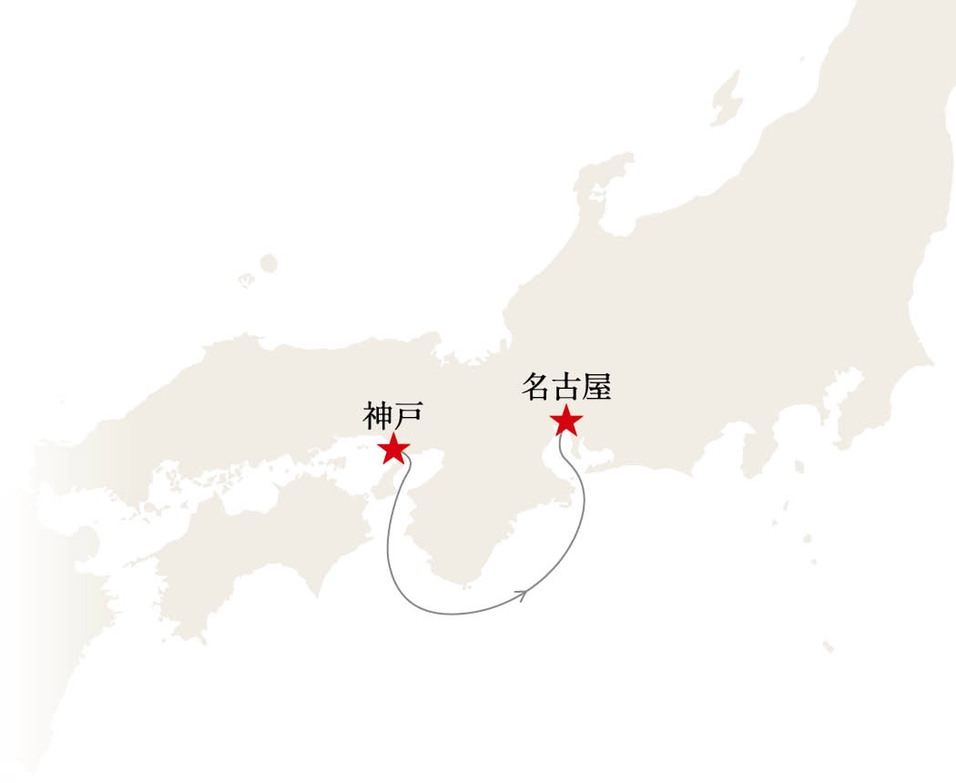 神戸発 → 名古屋着